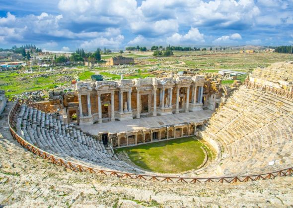 В днешния ден ще посетите природната забележителност Памуккале и древния град Хиераполис (пакет "Входни такси"). Пътят до Памуккале (дворец на памука) минава през прекрасна меандрова долина. Типичните за местния пейзаж снежнобели калциеви каскади са възникнали от отлагания на течащите по скалите термални води. Още от древността благодарение на този очарователен природен декор на извора се приписват лечебни свойства. По-късно ще посетите руините на бляскавия древен град Хиераполис, преживял своя разцвет в римско време, простиращи се над калциевите каскади. Тук се намират основите на храма на Аполон от III в. от н. е. Римският амфитеатър е красив и внушителен със своите петдесет стъпаловидни реда от травертин. След настаняването ще имате възможност за топла баня във вашия термален хотел.