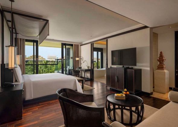 Всички стаи са в модерен Индонезийски стил и са оборудвани с климатик, телевизор с плосък екран със сателитни канали, сейф, машина за кафе и чай, телефон, баня с вана и душ, безплатни тоалетни принадлежности, сешоар, балкон или тераса, безплатен wifi.