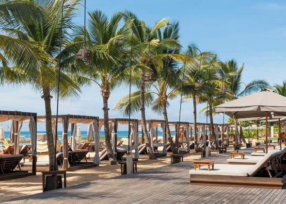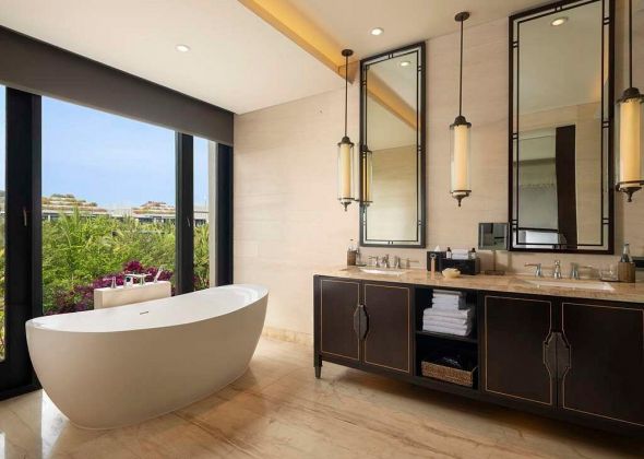 - Nusantara Presidential Villa - 1,379 квадрата площ със собствен басейн, кухня, три спални с изглед към плажа и океана;