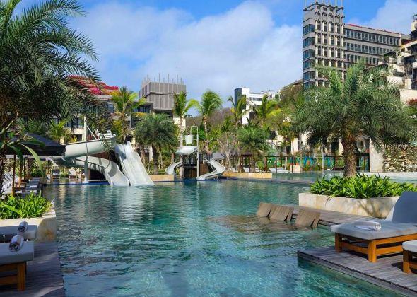 Хотелът е разположен в близост до плажната ивица в курорт Нуса Дуа.