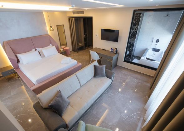 Хотелът се състои от 174 стаи - стандартни стаи, Junior Suite и Delux Suite. Всяка стая разполага с климатик, сет за чай/кафе, телевизор, телефон, хладилник, балкон, баня с душ, сешоар, безплатен Wi-Fi.