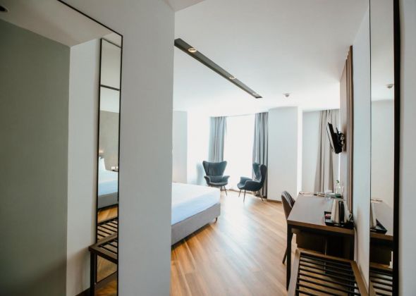 Хотелът разполага с 49 стандартни стаи. Всички стаи са оборудвани с климатик, телефон, телевизор, сейф, минибар, баня с вана или душ, сешоар. Някои стаи са с балкон, а суитите включват и кът за сядане.