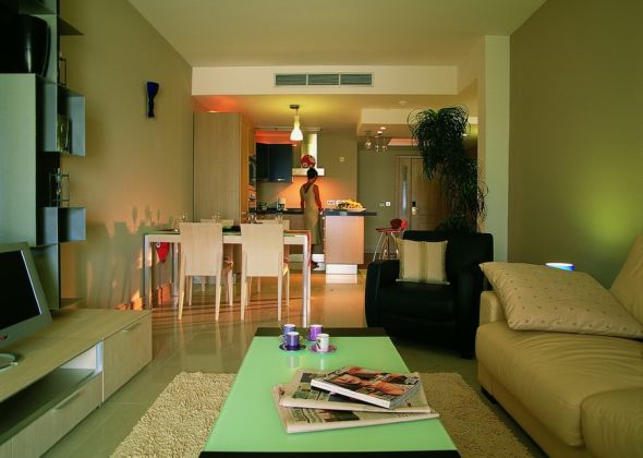 Хотелът разполага с 340 стаи и сюити, всички те с балкон с директна гледка море, климатик, мини бар, телефон, TV, факс, интернет, сешоар, сейф, кана за кафе и чай, дъска за гладене, писалище