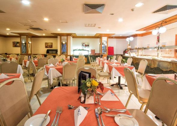 Ресторант, бар, външен и вътрешен басейн, СПА център (джакузи и сауна), зала за игра, слънчева тераса.