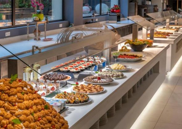 Хотелът разполага с основен бюфет ресторант, предлагащ разнообразие от международна и средиземноморска кухня, както и готвене на живо. Менютата са разнообразни и подходящи както за възрастни, така и за деца.
