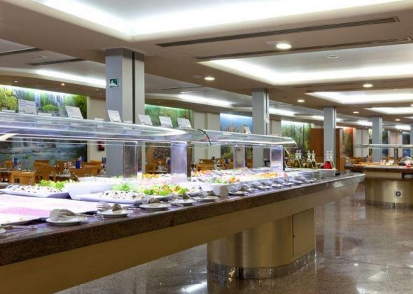 На разположение на гостите има 2 ресторанта с ястия на шведска маса, бар край басейна и бар с дискотека.