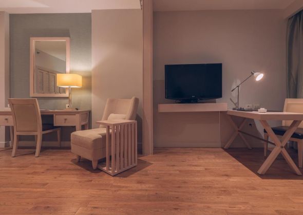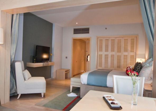Хотелът разполага с общо 292 стаи, разположени в основна сграда и анекс сграда. 83 Standard Rooms (37 м2), 94 Superior Sea View Rooms (37 м2 ), 32 Deluxe Rooms (47 м2), 12 Junior Suite (47 м2). Всички стаи са оборудвани с климатик, телевизор, телефон, баня с душ, сешоар, минибар (зарежда се всеки ден с минерална вода - безплатно), сет за чай/кафе, сейф (безплатен), балкон. Почистване на стаите и смяна на кърпите - всеки ден, смяна на спално бельо – 3 пъти в седмицата.
