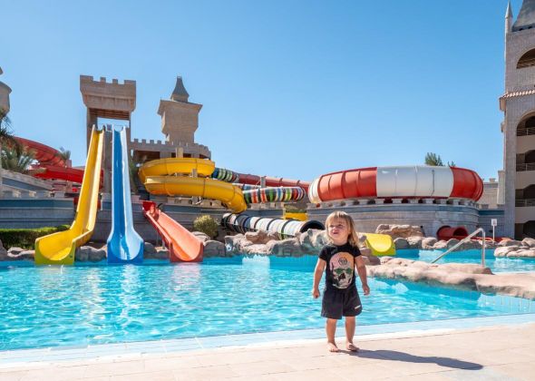 За децата: детски басейн, AQUA парк, Luna  парк 5, мини клуб (5-12г.), видео игри и 6D кино (срещу доплащане), мини диско, детски ъгъл в основния ресторант.