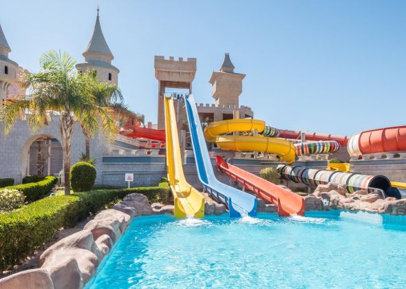На територията на хотела: Основен ресторант, 3 а - ла - карт ресторанта (италиански, ориенталски и азиатски), 3 бара ( English pub – платен) , 3 открити басейна, AQUA парк с 4 басейна и 226пързалки, Luna  парк, амфитеатър, СПА център, 3 конферентни зали, Wi - Fi (безплатно – в общите части на хотела).