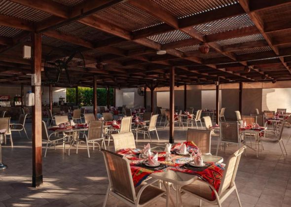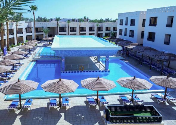 Намира се на 17 км. от летище Хургада, на 23 км. от центъра на Хургада, на брега на морето.