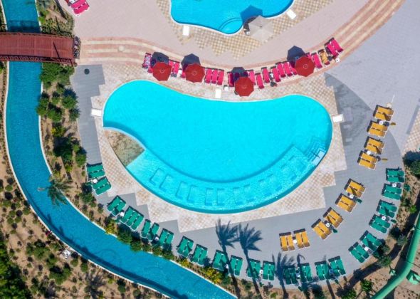 Основен ресторант, 4 бара, 4 открити басейна (2 от които отопляеми през зимния сезон), аквапарк с 36 пързалки, СПА център, фризьорски и козметиен салон, фитнес, магазини, Wi-Fi.