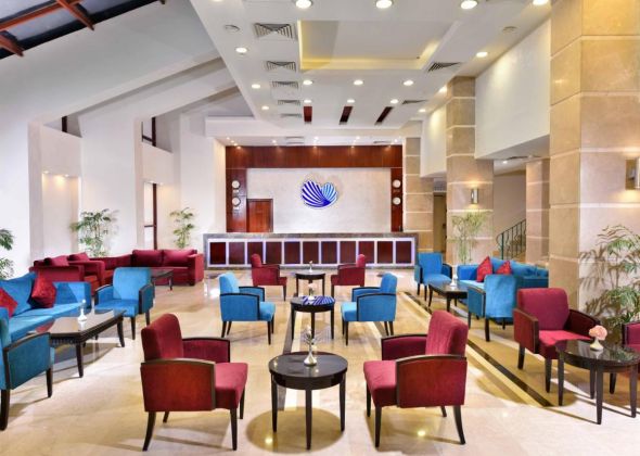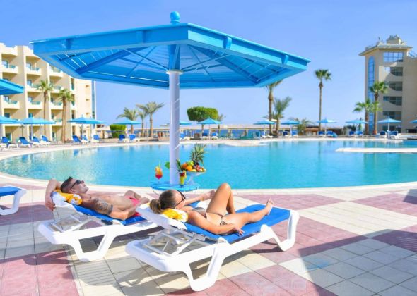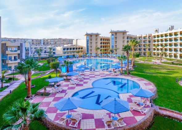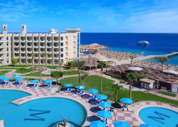 Намира се на 10 км. от летище Хургада, на 2 км. от центъра на Хургада, на брега на морето.