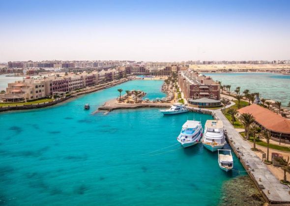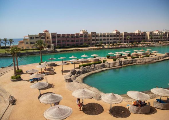 Намира се на 12 км. от летище Хургада, на 3 км. от центъра на града, на брега на морето. Построен през 1991 г., последно реновиран през 2018 г.
