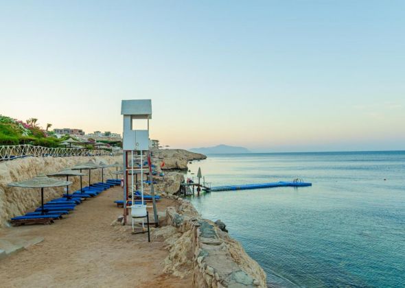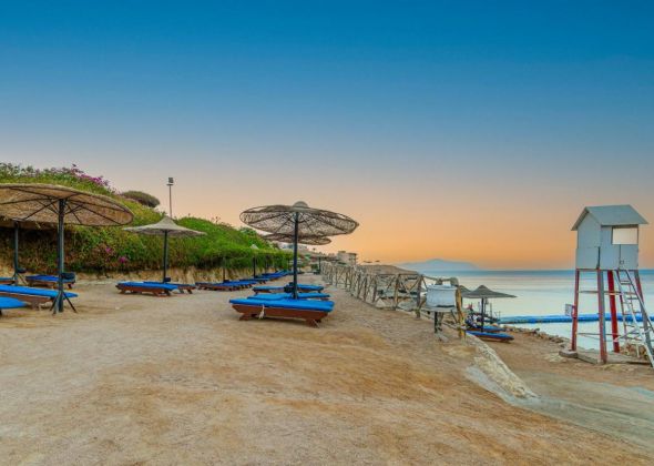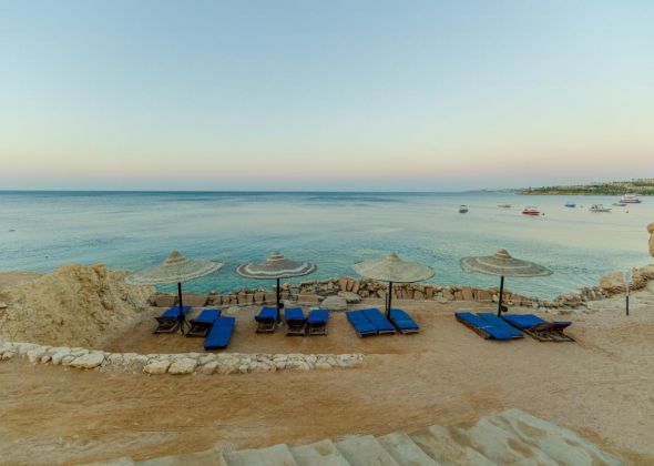 Собствен, с дължина 350 м. плаж с коралови пясъчни тераси и лесен достъп за гмуркане с шнорхел на рифа Far Garden, кей. Чадъри, шезлонги и плажни кърпи на плажа и при басейна – безплатно.