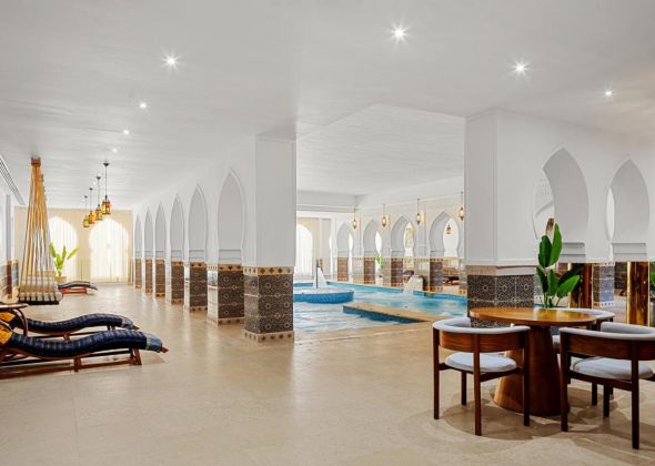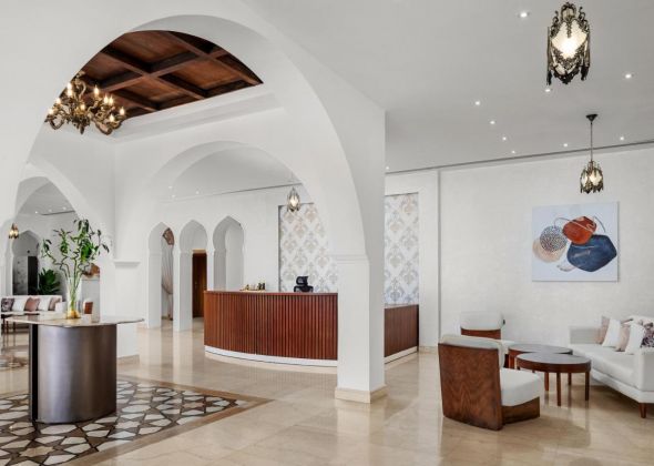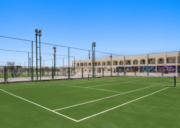 Собствен, пясъчен с дължина 600 м., коралов риф за гмуркане и кей.