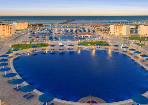 Намира се на 35 км. от летище Хургада, на 49 км. центъра на Хургада, на брега на морето.