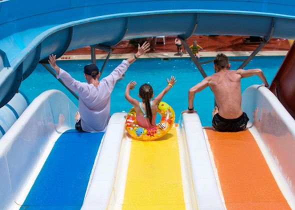 За децата: детски басейн (отопляем през зимния сезон), 5 водни пързалки, мини клуб (4-12г.), мини диско, детско меню.