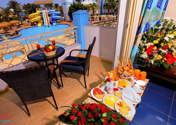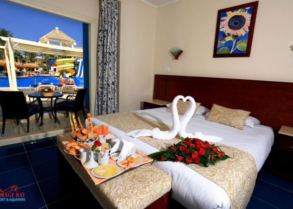 Хотелът разполага с общо 470 стаи, разположени в 1 основна триетажна сграда, 1 триетажна Anex сграда, комплекс от едноетажни бунгала, от които 403 Standart room GV (с изглед към градината – 35 м2), 18 Standart room PV (с изглед към басейна – 36 м2), Standart room Aquapark view (с изглед към аквапарка – 37 м2), 28 Family room (2 спални, 2 бани, 65 м2), . Всички стаи са оборудвани с климатик, телевизор, телефон, баня с душ, сешоар, сет за чай/кафе, минибар (вода - безплатно), балкон. Почистване на стаите и смяна на кърпи - всеки ден, смяна на спално бельо – всеки ден.
