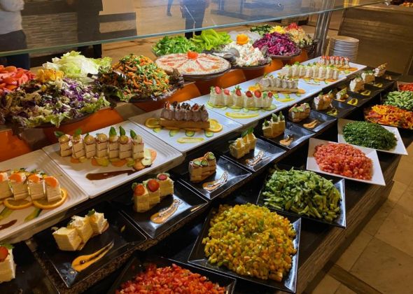 Основен ресторант, 2 а - ла - карт ресторанта (италиански, ориенталски – с предварителна резервация, работят само за вечеря), снек бар на плажа, 4 бара, 5 открити басейна (1 от които отопляем през зимния сезон), аквапарк с 8 пързалки, амфитеатър, СПА център, 2 конферентни зали, Wi - Fi (безплатно – в общите части на хотела).