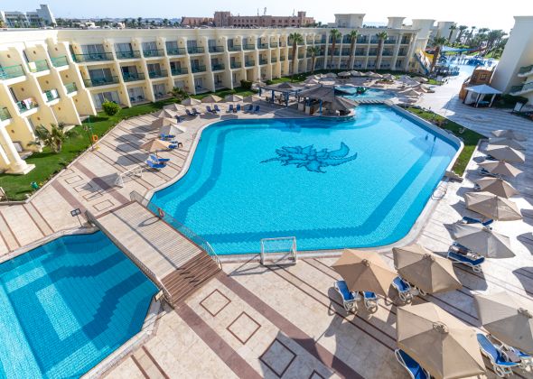 Намира се на 8 км от летище Хургада, на 15 км от центъра на Хургада, на брега на морето. Построен 1995 г., на обща площ от 90 000 м2. Реновиран 2018 г.