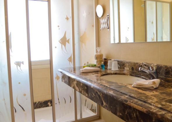 Плаж: Собствен, пясъчен. Чадъри, шезлонги и матраци на плажа и при басейна - безплатно. Плажни кърпи – безплатн