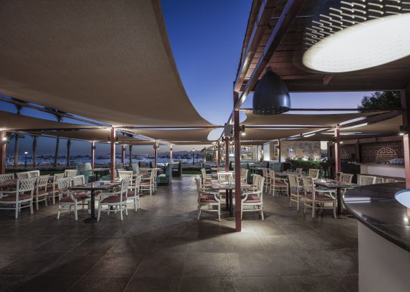 5 бара, 2 открити басейна (1 отопляем), аква парк, СПА център, магазини, 7 конферентни зали, паркинг.