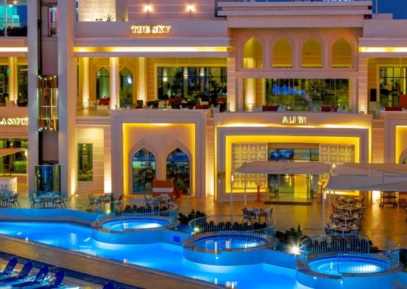 Основен ресторант, снек ресторант, снек бар на плажа ( Albatros beach Resort), 3 а-ла карт ресоранта (италиански, азиатски,ориенталски), 7 бара, Red Sky Bar (в Beach Albatros Resort), наргиле бар, 7 открити басейна и (1 отопляем през зимния сезон), гостите на хотела могат да използват и басейните в хотелите (Albatros Aqua Park - 9 басейна, Aqua Vista – 6 басейна), дискотека, 9 водни пързалки за възрастни - Albatros Aqua Park ), 2 тенис кортa, СПА център, магазини, конферентни зали, Wi-Fi
