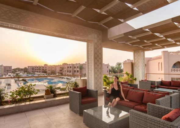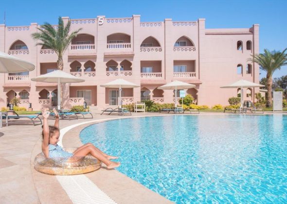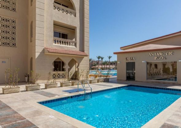 Намира се на 7 км от летище Хургада, на 15 км. от центъра на Хургада, на 700 м от брега на морето. Посторен през 2008 г. Последно реновиран през 2017 г.