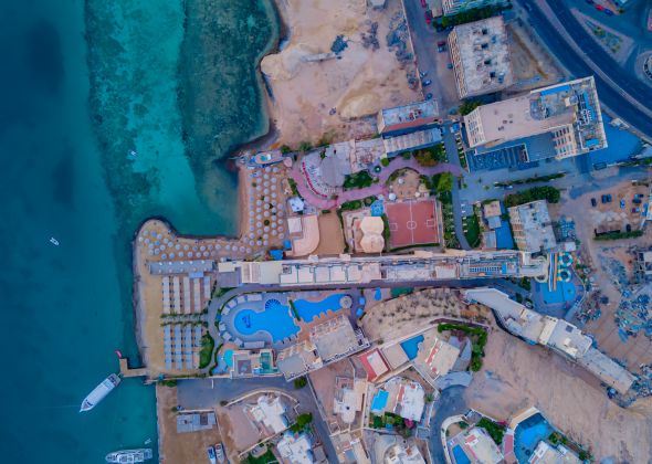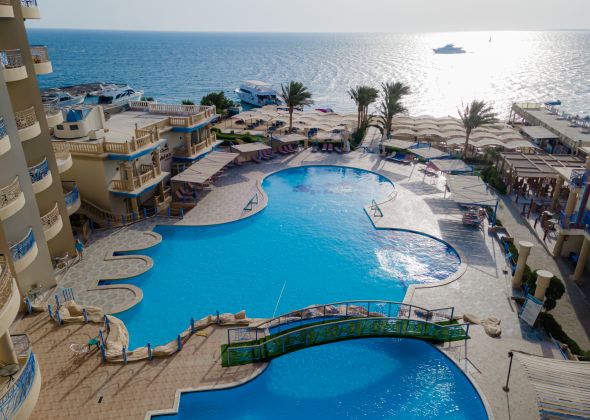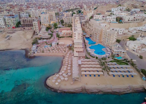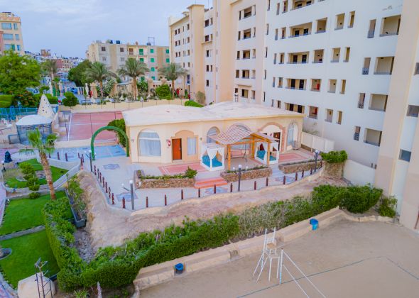 Намира се на 8 км от летище Хургада, на 3 км от центъра на Хургада, на брега на морето. Построен 2010 г., на обща площ от 15 000 м2.