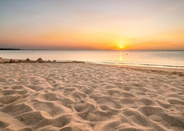 Собствен, пясъчен. Чадъри, шезлонги и матраци на плажа и при басейна - безплатно. Плажни кърпи – безплатно.