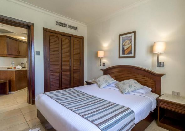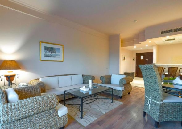 Хотелът разполага с общо 369 стаи, разположени в комплекс от едноетажни вили, от които 189 Classic room garden view (35 m2.), 136 Premium room garden view (38 m2), 55 family room (48m2.). Всички стаи са оборудвани с климатик, телевизор, телефон, баня с душ, сешоар, сейф (безплатно). Почистване на стаите и смяна на кърпите - всеки ден, смяна на спално бельо – 3 пъти в седмицата.
