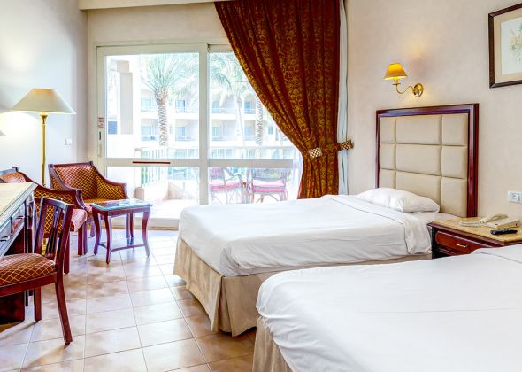 Хотелът разполага с общо 293 стаи и апартаменти, разположени в 5-етажна сграда, от които 259 Standard rooms (с изглед към басейн или море – 27 м2), 12 Triple rooms (с изглед към градина, басейн или море – 31 м2), 12 Junior Suites (с изглед към градина, басейн или море – 37 м2), 6 Executive Suite (43 м2), 4 Royal Suites (120 м2). Всички стаи са оборудвани с климатик, телевизор, телефон, баня с душ/вана, сешоар, сет за чай/кафе, минибар (платен), сейф (безплатно), балкон. Почистване на стаите и смяна на кърпи - всеки ден, смяна на спално бельо - 2 пъти седмично.
