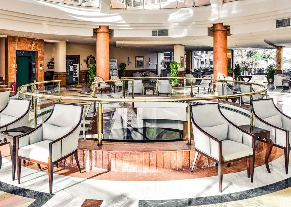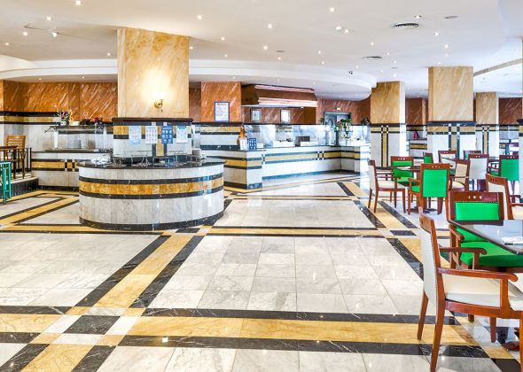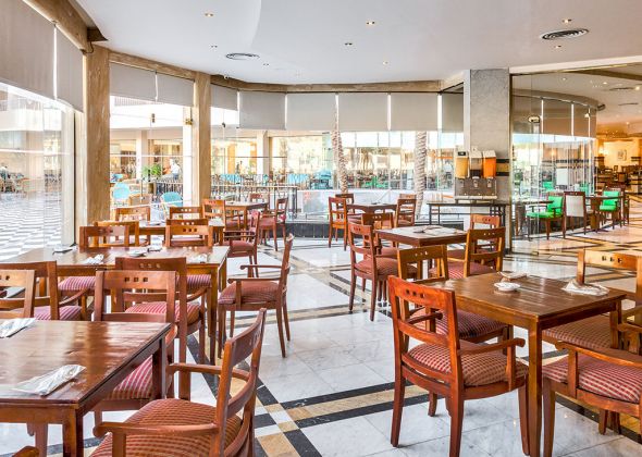 Основен ресторант, 3 а-ла-карт ресторанта (италиански - 1 посещение седмично, безплатно сет меню с предварителна резервация), рибен (платен), грил до басейна (платен за обяд, безплатен снакс), пица снек бар (платен), 6 бара (3 платени), 2 открити басейна (1 отопляем през зимата), СПА център, конферентна зала, магазини.