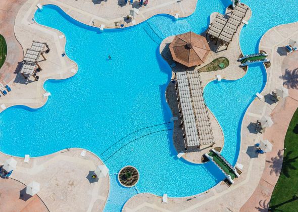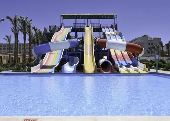 Основен ресторант, 3 а-ла-карт ресторанта (мексикански, египетски и гръцки - с предварителна резервация, съгласно концепцията на хотела), 6 бара, 3 открити басейна (1 отопляем през зимния сезон), аквапарк с 10 пързалки, СПА център, конферентна зала, магазини.