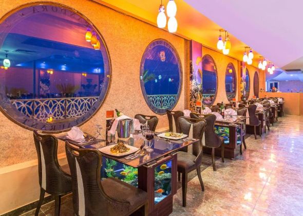 Основен ресторант, 2 а-ла-карт ресторанта (италиански и рибен), 6 бара, 3 открити басейна (1 отопляем през зимния сезон) и отделение за деца в един от басейните за възрастни ( отопляем през зимния сезон), аквапарк с 12 водни пързалки за възрастни и 6 водни пързалки за деца, тенис корта, СПА център, конферентна зала, магазини, Wi-fi (в лоби).