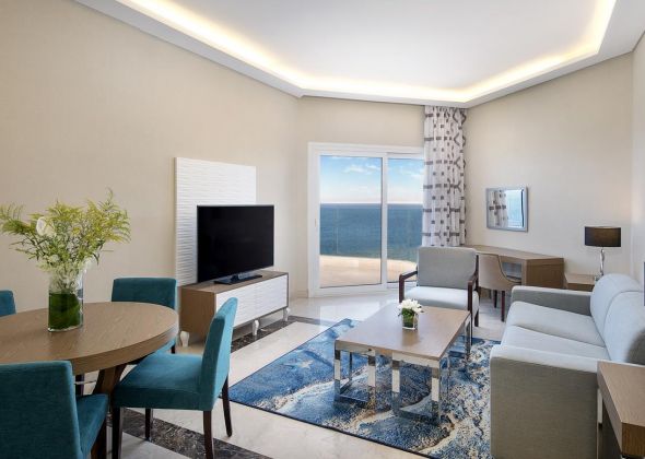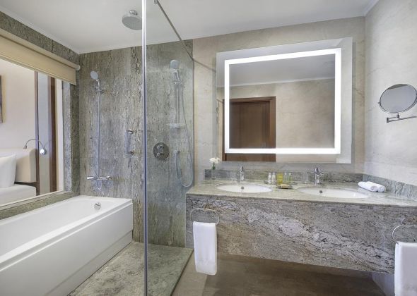 Хотелът разполага с общо с 495 стаи разположени в основна сграда и вили, от които Guest Rooms( 33m2),Deluxe Room Sea view (гледка море 33м2), Superior Room Sea view ( 33m2), Premium Room Sea View (44m2), Family Junior Suite (48 m2),King Accessible Guest Room (инвалидни стаи), Royal Villa (132m2). Всички стаи са оборудвани с вана, сешоар, централен климатик, телевизор, телефон, радиоприемник, мини-бар, сейф (на рецепцията - безплатно), балкон или тераса, почистване на стаите – ежедневно.