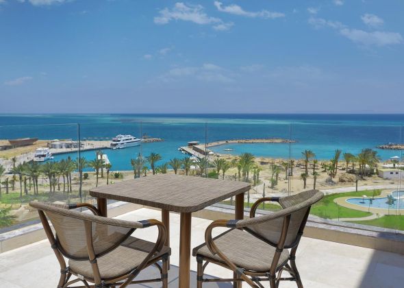 Намира се на 13 км. от летище Хургада, на 24 км. от центъра на Хургада, на брега на морето с частно пристанище.