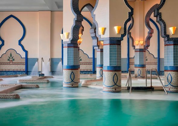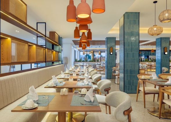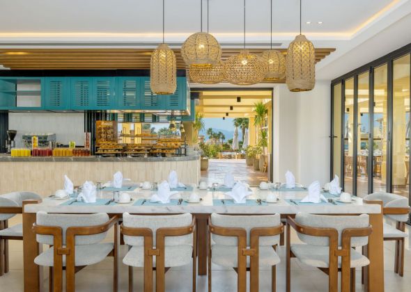 Основен ресторант, 1 а-ла-карт ресторант (рибен – с предварителна резервация, съгласно концепцията на хотела), 2 бара, 2 открити басейна, аквапарк, СПА център, 9 конферентни зали, магазини.