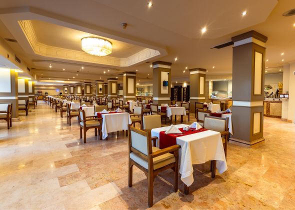 Основен ресторант, 2 а-ла-карт ресторанта (италиански и азиатски- срещу заплащане/с предварителна резервация, съгласно концепцията на хотела/ 1 безплатно посещение на 1 от ресторантите при минимум 7 нощувки), 4 бара (1 бар 24h ), 2 открити басейна, водни пързалки, тенис корт, конферентна зала, магазини.