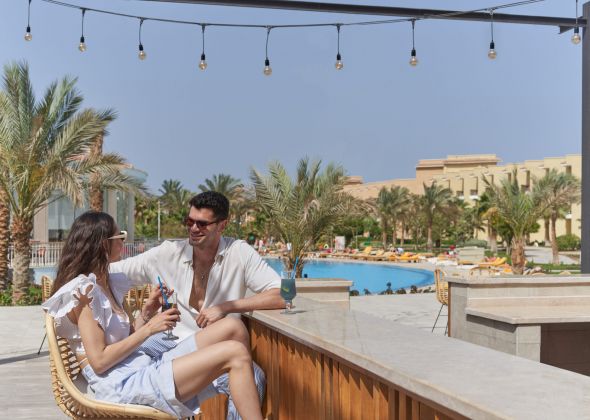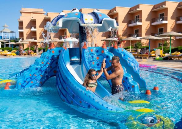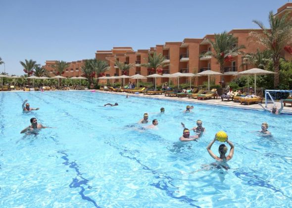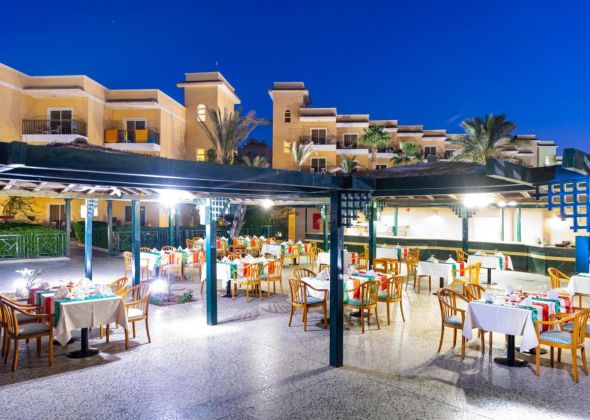 Намира се на 25 км. от летище Хургада, на 13 км. от центъра на Хургада,в района на Ел Гуна, на брега на морето. Посторен през 2009 г., последно реновиран през 2015 г.
