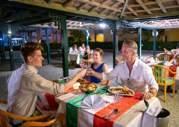 2 ресторанта (един, от които основен), 2 италиански а-ла-карт ресторанта, 3 бара, 3 басейна (2 отопляеми през зимата), водни пързалки, СПА център, Wi - Fi (безплатно в общите части на хотела).