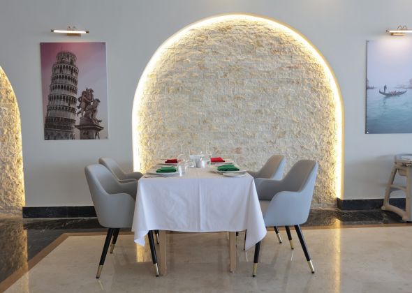 2 основни ресторанта с различна тематика, 5 а - ла - карт ресторанта (рибен, италиански, ориенталски, азиатски, китайски-с предварителна резервация, съгласно концепцията на хотела), 8 бара, чаена къща, 1 голям открит басейн (5 400 м2) и 1 закрит басейн (отопляем през зимния сезон), аквапарк със 17 водни пързалки, СПА център, дискотека, конферентна зала, магазини.