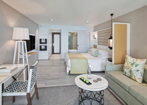 Хотелът разполага със следните видове настаняване: 104 Prestige Rooms (37 sea facing and 67 beachfront - 45 m2), 149 Junior Suites (96 sea facing and 53 beachfront - 68 m2), 6 Deluxe Suites (96 m2), 18 Villas (2 Villas с гледка към океана, 16 Villas с гледка към тропическата градина - 375 m2 с 2 спални, 525 m2 с 3 спални), Presidential Villa (Beachfront, с 5 спални - 978 m2). Всичи стаи са модерно обзаведени и декорирани в топли цветове. Всички стаи са оборудвани с: индивидуален климатик, телефон, телевизор с плосък екран и сателитна телевизия, Wi-Fi (безплатно), Apple mac mini, сейф (безплатно), кът за сядане, сет за кафе и чай, кафе машина Nespresso с капсули (платено, с изключение на вилите), баня с душ/вана, сешоар, балкон или тераса. Всички стаи имат гледка към океана и се намират в сгради с не повече от 3 етажа. Сградите не разполагат с асансьор.
