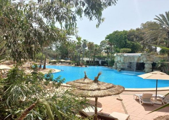 Tunisia Lodge 4* е част от комплекс с два съседни хотела и предлага спокойна атмосфера, обширна градина, открит басейн, достъп до плажа и подходящи удобства за семейна почивка. Работи по концепция