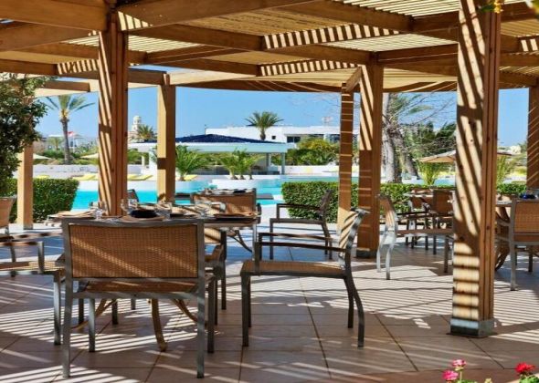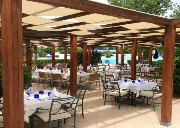- Основният ресторант работи на блок маса и предлага богато меню с интернационални и местни ястия. Има тематични вечери с различна кухня и тераса за хранене на открито.