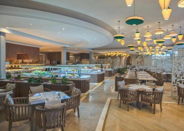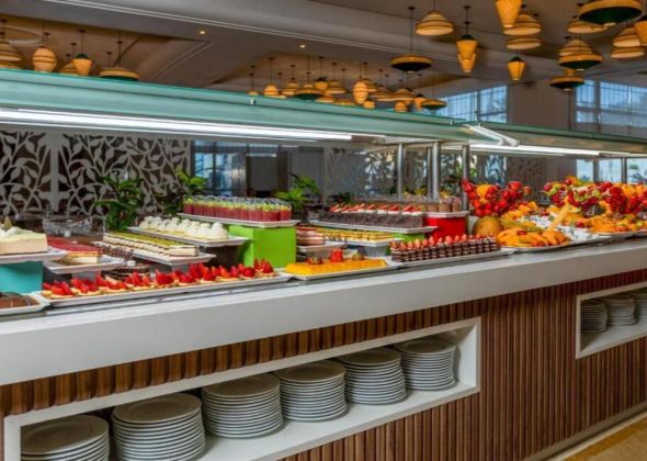 - Предлага закуска, обяд и вечеря с разнообразие от международна и местна кухня. Тематични вечери се организират редовно.