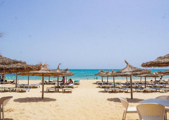 - Собствен, пясъчен плаж, на втора линия, на 300 метра от хотела. Чадъри и шезлонги на плажа и при басейна - безплатно. Плажни кърпи - безплатно, срещу депозит.