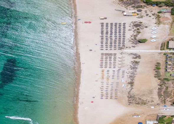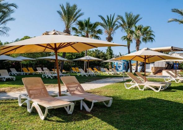 - Шезлонги, чадъри и кърпи на плажа и при басейна