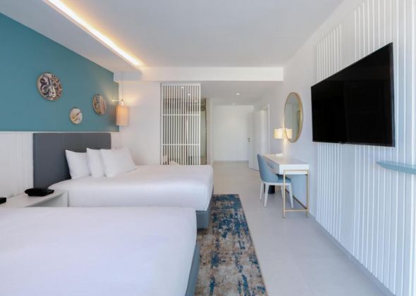 Хотелът разполага с общо 346 стаи, разположени в основна сграда с асансьори - Guest Room (34 кв.м), Guest Room Garden View (34 кв.м), Deluxe Room Partial Sea View (34 кв.м), Deluxe Sea Front Room (34 кв.м), 1 BR Deluxe Suite (73 кв.м със спалня и хол, с врата между тях, баня с душ и вана), 1 BR Deluxe Suite Sea Front (73 кв.м със спалня и хол, с врата между тях, баня с душ и вана), 1 BR Suite (59 кв.м със спалня и хол, с врата между тях и две бани), 1 BR Suite Pool View (59 кв.м със спалня и хол, с врата между тях и две бани), 1 BR Suite Partial Sea View (59 кв.м със спалня и хол, с врата между тях и две бани), 1 BR Suite Sea Front View (59 кв.м със спалня и хол, с врата между тях и две бани).