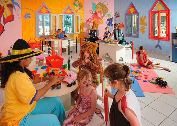 За децата: детски басейн с мини пързалки, втори детски басейн, мини клуб (4-12 год), детска площадка, детски столове в ресторантите, бебешка кошара (по заявка, при наличност).